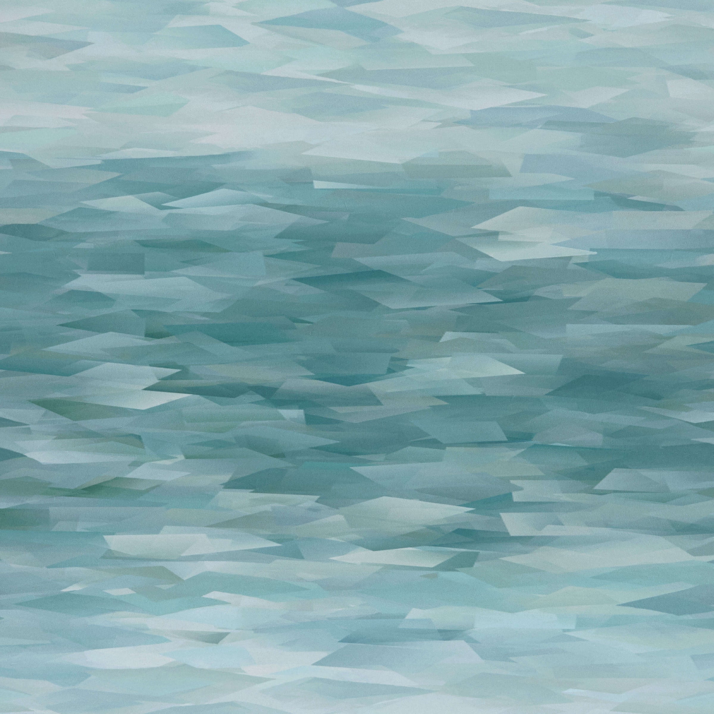 Watercolour crystal shards form reflections softly hitting the water with subtle vignettes of dark and light ombré stripes. In contemporary shades of blue dusk, mineral, caramel and heather.