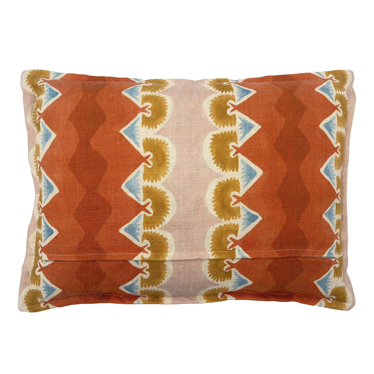 From Linwood’s Maru collection, the Talki Brick Red Cushion features a striking palm-inspired motif arranged in rhythmic vertical stripes. Printed on 100% linen, this patterned cushion combines symmetry and movement with warm brick-red, ochre, and soft blue tones. Reversed in the same design and finished with a smart Oxford edge, it offers a polished, versatile look – a bold yet elegant piece that adds interest and artisanal charm to sofas, armchairs, and beds. 40cm x 55cm Dry Clean Only Duck Feather Pad |