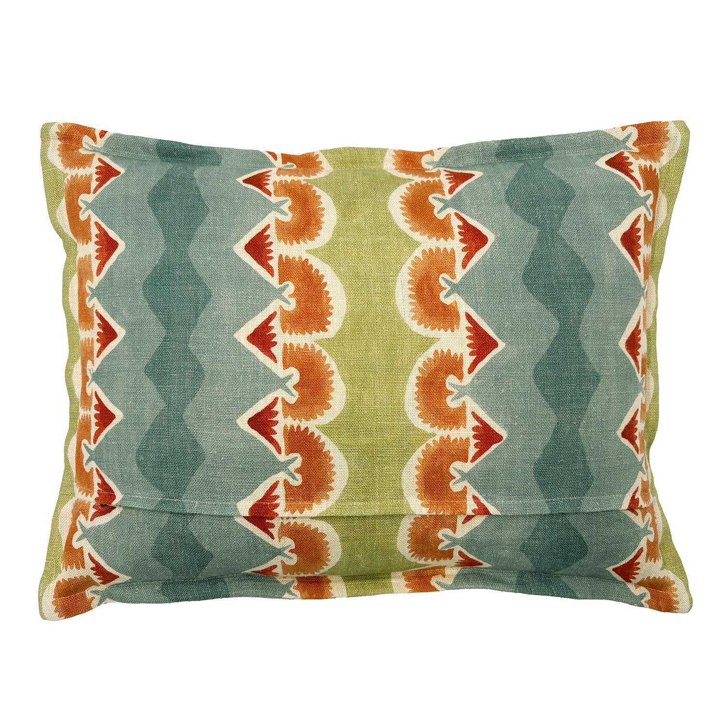 The Talki River Cushion from Linwood’s Maru collection features the same striking palm-inspired motif arranged in rhythmic vertical stripes. Printed on 100% linen, this patterned cushion balances symmetry and movement in shades of soft blue, green, and ochre. Reversed in the same design and finished with a smart Oxford edge, it offers a polished, versatile look – an elegant piece that adds freshness and artisanal charm to sofas, armchairs, and beds. |