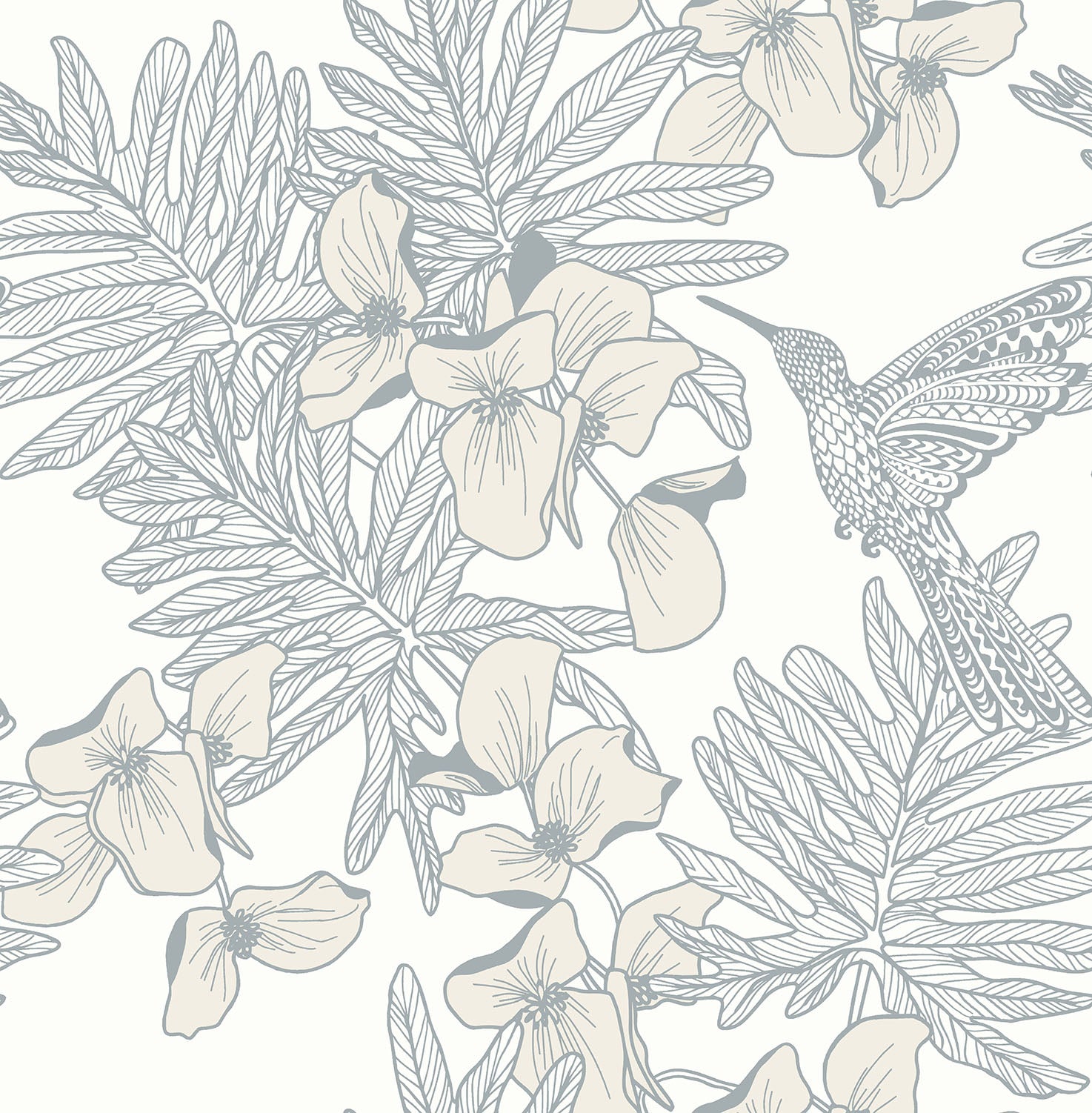 Illustrative botanical floral and hummingbirds showcasing the natural forms of island fauna.